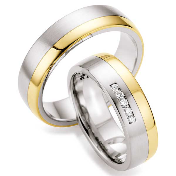 - Bicolor-Ringe: Spannungsreiche Kombination aus Weiß- und Gelbgold.