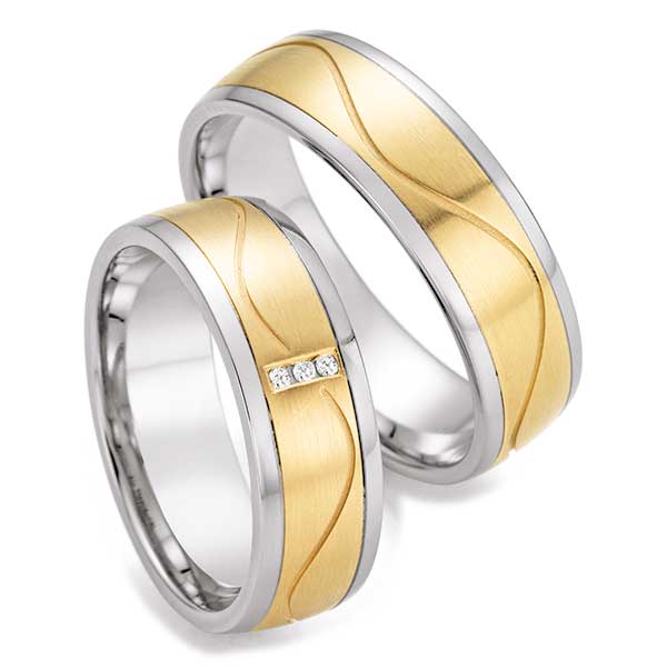 • Bicolor-Ringe: Spannungsreiche Kombination aus Weiß- und Gelbgold.