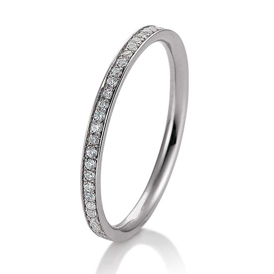 - Channel-Setting: Die Steine liegen geschützt und eben in der Ringschiene – besonders pflegeleicht.