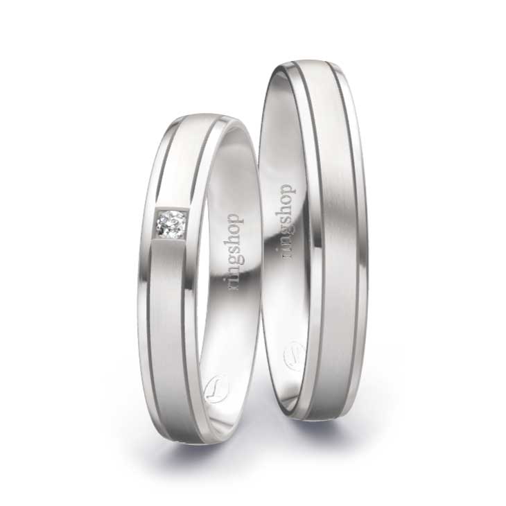 Palladium: Das mit Platin verwandte Metall Palladium erhält mit einem Feingehalt von 950/- eine besonders helle und strahlende Oberfläche. Mit einem Feingehalt von 500/- ist es deutlich dunkler wie etwa Graugold.