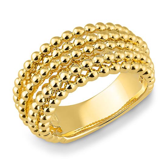Gelbgold: Die „klassische“, elegante und zeitlose Goldfarbe mit Feingehalt 333/-, 375/-, 585/- und 750/- ist eine dem Feingold sehr ähnelnde gelbe Goldlegierung, die vorwiegend mit Silber und Kupfer legiert ist. Mit einem Feingehalt von 585/- (14 Karat) und 750/- (18 Karat) spricht man von „Echtschmuck“.