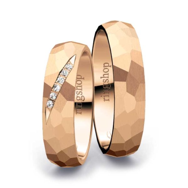 Rotgold: Es handelt sich um eine Legierung aus Feingold, Kupfer und Silber mit Goldanteilen zwischen 333/- und 750/-. Der etwas größere Kupferanteil sorgt für die namensgebende „rote“ Färbung und Härte des Materials. Der elegante und gleichermaßen zeitlose Farbton ist Kupfer ähnlich.
