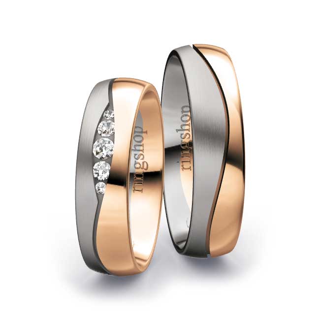 Rotgold: Es handelt sich um eine Legierung aus Feingold, Kupfer und Silber mit Goldanteilen zwischen 333/- und 750/-. Der etwas größere Kupferanteil sorgt für die namensgebende „rote“ Färbung und Härte des Materials. Der elegante und gleichermaßen zeitlose Farbton ist Kupfer ähnlich.