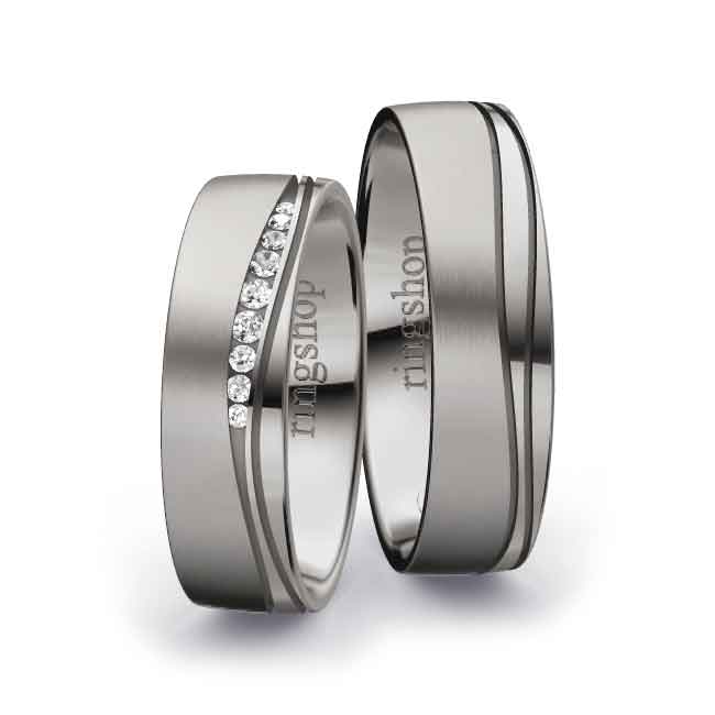 Palladium: Das mit Platin verwandte Metall Palladium erhält mit einem Feingehalt von 950/- eine besonders helle und strahlende Oberfläche. Mit einem Feingehalt von 500/- ist es deutlich dunkler wie etwa Graugold.