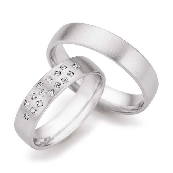 Silber: Seit Jahrhunderten sehr beliebte Materialien zur Herstellung von Schmuck sind Silberlegierungen. Silber überzeugt durch sein strahlend helles Erscheinungsbild und ist aufgrund des günstigeren Preises sehr gefragt – speziell bei Verlobungsringen.