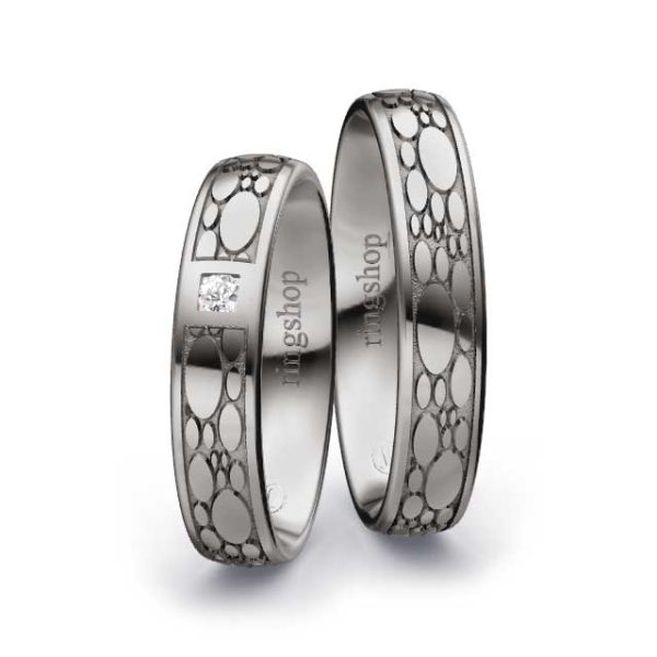 Graugold: In 750/- besteht Graugold aus 75 % reinem Gold. Erhältlch ist es auch mit einem Feingehalt von 585/-, also einem Goldanteil von 58,5 %. Ist ein noch dunkleres Erscheinungsbild gewünscht, kann Graugold zusätzlich rutheniert werden.