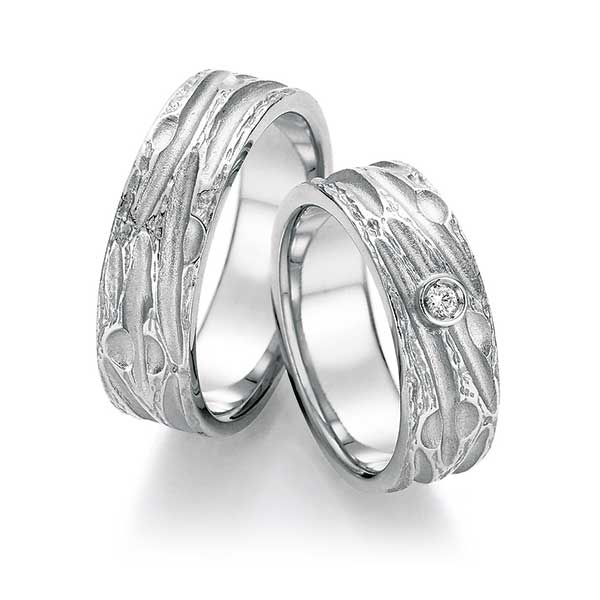 Silber: Seit Jahrhunderten sehr beliebte Materialien zur Herstellung von Schmuck sind Silberlegierungen. Silber überzeugt durch sein strahlend helles Erscheinungsbild und ist aufgrund des günstigeren Preises sehr gefragt – speziell bei Verlobungsringen.