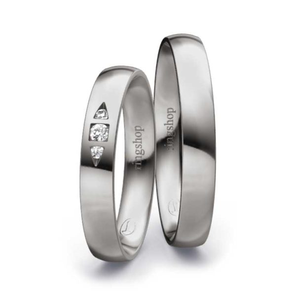 Palladium: Das mit Platin verwandte Metall Palladium erhält mit einem Feingehalt von 950/- eine besonders helle und strahlende Oberfläche. Mit einem Feingehalt von 500/- ist es deutlich dunkler wie etwa Graugold.