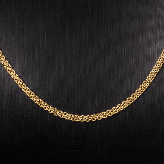 Gelbgold: Die „klassische“, elegante und zeitlose Goldfarbe mit Feingehalt 333/-, 375/-, 585/- und 750/- ist eine dem Feingold sehr ähnelnde gelbe Goldlegierung, die vorwiegend mit Silber und Kupfer legiert ist. Mit einem Feingehalt von 585/- (14 Karat) und 750/- (18 Karat) spricht man von „Echtschmuck“.
