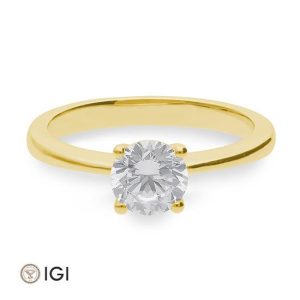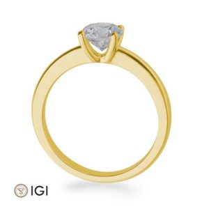 Gelbgold: Die „klassische“, elegante und zeitlose Goldfarbe mit Feingehalt 333/-, 375/-, 585/- und 750/- ist eine dem Feingold sehr ähnelnde gelbe Goldlegierung, die vorwiegend mit Silber und Kupfer legiert ist. Mit einem Feingehalt von 585/- (14 Karat) und 750/- (18 Karat) spricht man von „Echtschmuck“.
