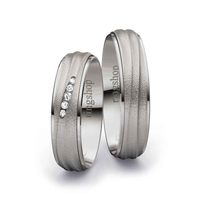 Palladium: Das mit Platin verwandte Metall Palladium erhält mit einem Feingehalt von 950/- eine besonders helle und strahlende Oberfläche. Mit einem Feingehalt von 500/- ist es deutlich dunkler wie etwa Graugold.