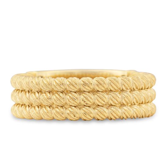 Gelbgold: Die „klassische“, elegante und zeitlose Goldfarbe mit Feingehalt 333/-, 375/-, 585/- und 750/- ist eine dem Feingold sehr ähnelnde gelbe Goldlegierung, die vorwiegend mit Silber und Kupfer legiert ist. Mit einem Feingehalt von 585/- (14 Karat) und 750/- (18 Karat) spricht man von „Echtschmuck“.