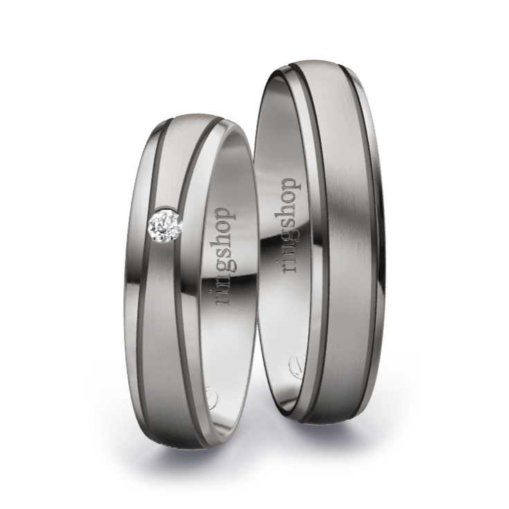 Palladium: Das mit Platin verwandte Metall Palladium erhält mit einem Feingehalt von 950/- eine besonders helle und strahlende Oberfläche. Mit einem Feingehalt von 500/- ist es deutlich dunkler wie etwa Graugold.