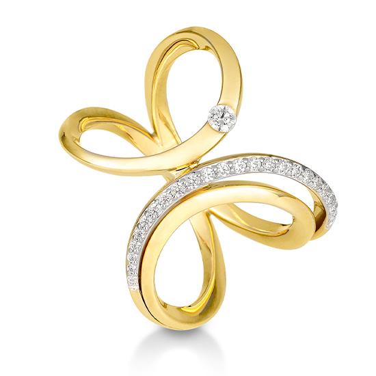Gelbgold: Die “klassische”, elegante und zeitlose Goldfarbe mit Feingehalt 333/-, 375/-, 585/- und 750/- ist eine dem Feingold sehr ähnelnde gelbe Goldlegierung, die vorwiegend mit Silber und Kupfer legiert ist. Mit einem Feingehalt von 585/- (14 Karat) und 750/- (18 Karat) spricht man von “Echtschmuck”.