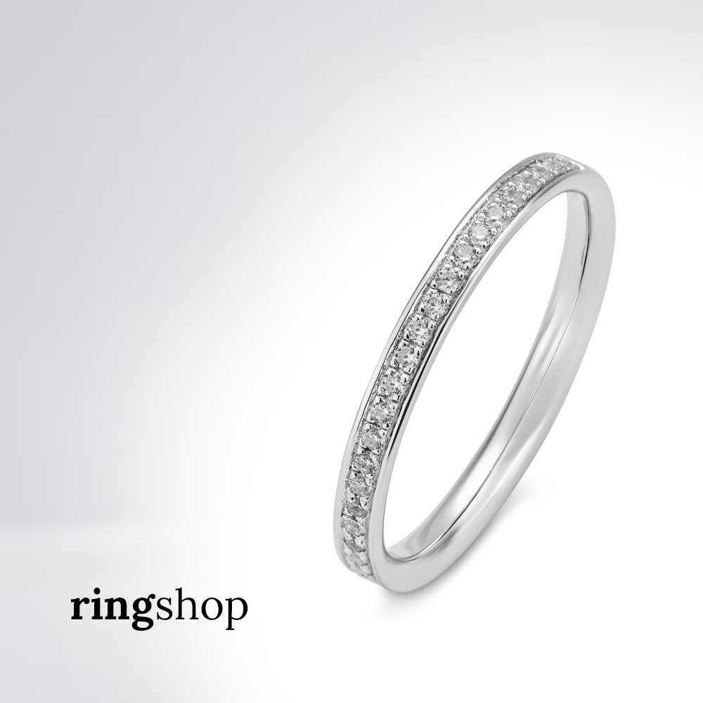 100 % des Ringes sind mit Brillanten ausgefasst – man spracht in diesem Fall von „voll ausgefasst“