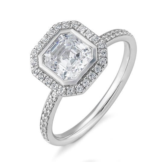 100 % des Ringes sind mit Brillanten ausgefasst – man spracht in diesem Fall von „voll ausgefasst“